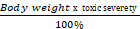 ).The severity of the toxic reaction caused by the administered dose can help determine the maximum effective dose for the body weight of the treated study animal, and this information is valuable in the development of pharmaceutical products. A test chemical with a computed toxic severity and toxic reaction rate less than zero provided it is proven to be non-genotoxic or non-cytotoxic, could be considered in the development of therapeutic agents. It's important to evaluate the toxic severity and toxic reaction rate of a dose over an adequate period, such as once every five days, to validate the safety of the test chemical for health.